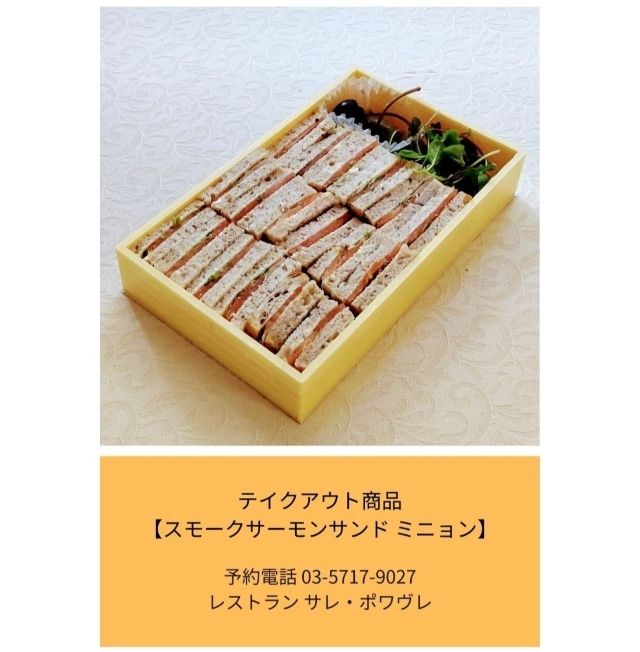 ご自宅での特別な会食、年末年始のお祝い、記念日などをより上質に彩るテイクアウト商品をご用意いたしました。シェフ信國がこだわり抜いた自家製スモークサーモンサンド ミニョンとお店でお馴染みの最高級キャビアをご家庭で優雅にお楽しみください。