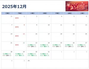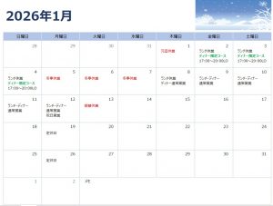 ランチは年内12月31日まで。年始は1月9日から営業いたします。